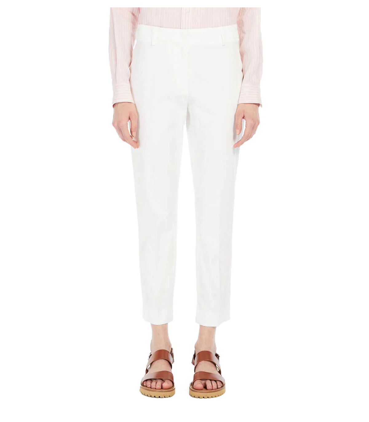 Cecco pants by Max Mara Weekend made of white stretch cotton gabardine with ironed crease on the front. French pockets on the sides, welt pockets on the back and zip and metal hook closure.