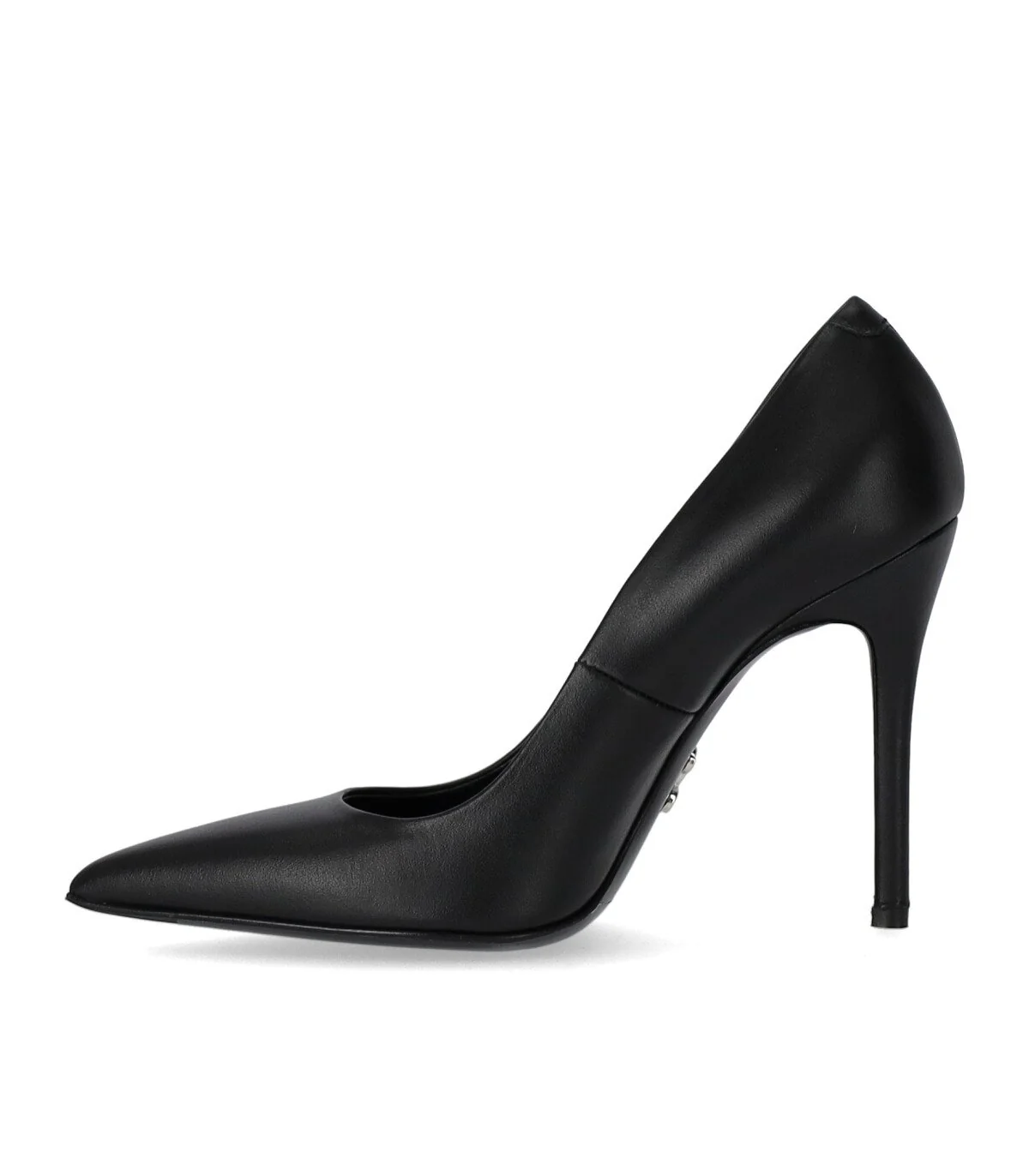 Leysbek pumps by Sergio Levantesi made of soft black leather, featuring a tapered toe and stiletto heel. Leather lining and insole, leather sole. Heel height 10.5 cm.